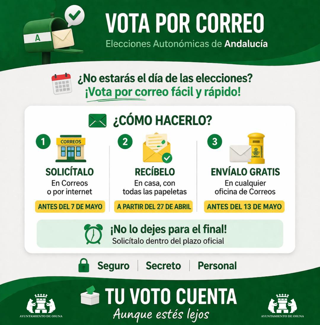 El Ayuntamiento de Osuna informa sobre cómo solicitar el voto por correo para la elecciones autonómicas