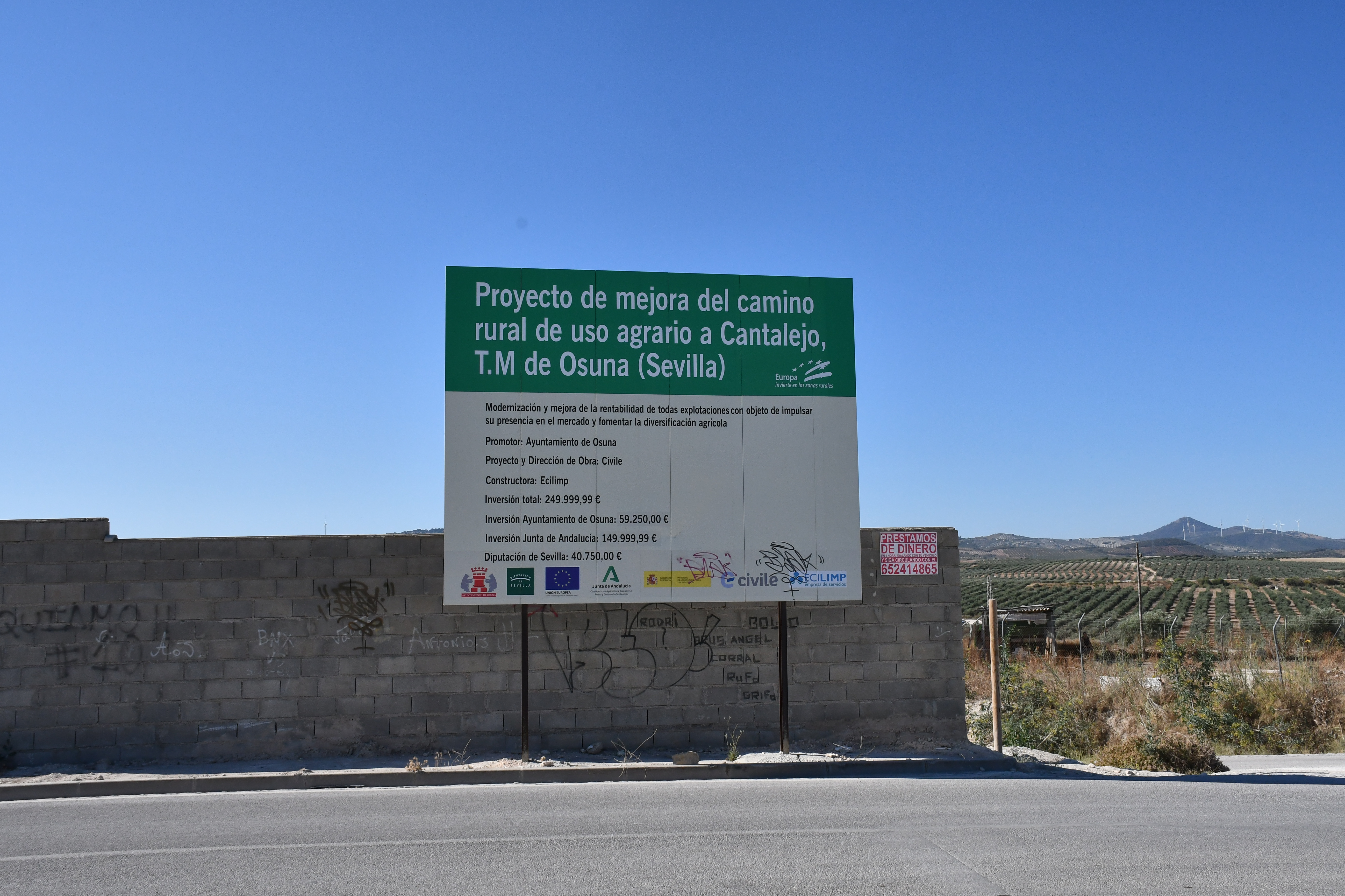 La obra, que ha sido promovida por el Ayuntamiento de Osuna ha supuesto una inversión de 250.000 euros por parte de tres administraciones. La Junta de Andalucía ha aportado 150.000, el Ayuntamiento de Osuna 59.250, y la Diputación de Sevilla 40.750.