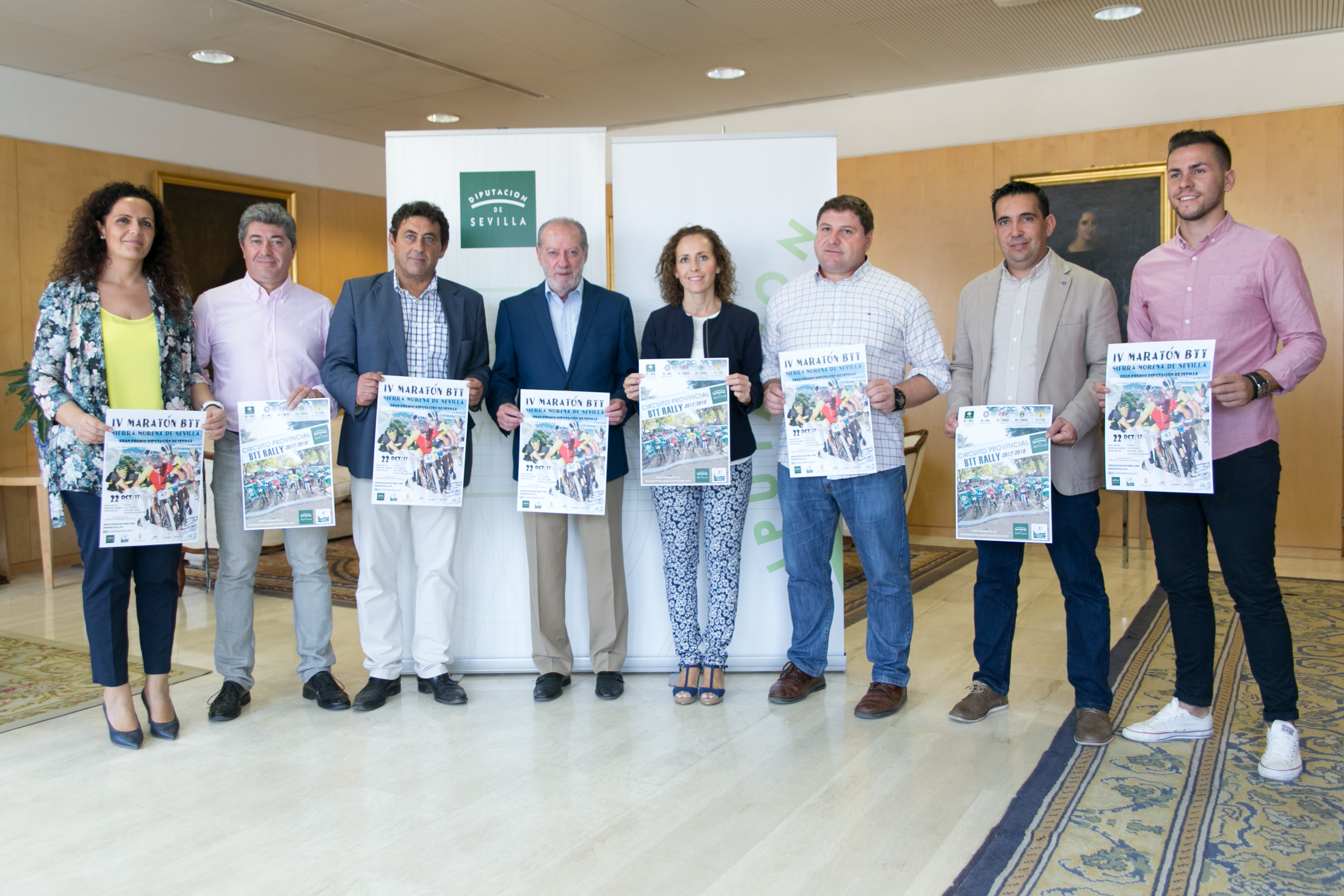 Ya está aquí la edición 2017-2018 del esperado Circuito Provincial BTT Rally ‘Diputación de Sevilla’, cuyo cartel ha sido presentado este mediodía por el presidente de la Diputación, Fernando Rodríguez Villalobos, el presidente de la Federación Andaluza de Ciclismo, Manuel Rodríguez García; el vicepresidente de la citada Federación y delegado provincial en Sevilla, Juan Fernández Camacho, junto a alcaldes y concejales de los municipios sede de este circuito, entre ellos Osuna, representado en este acto por el delegado municipal de Deportes, Benito Eslava.