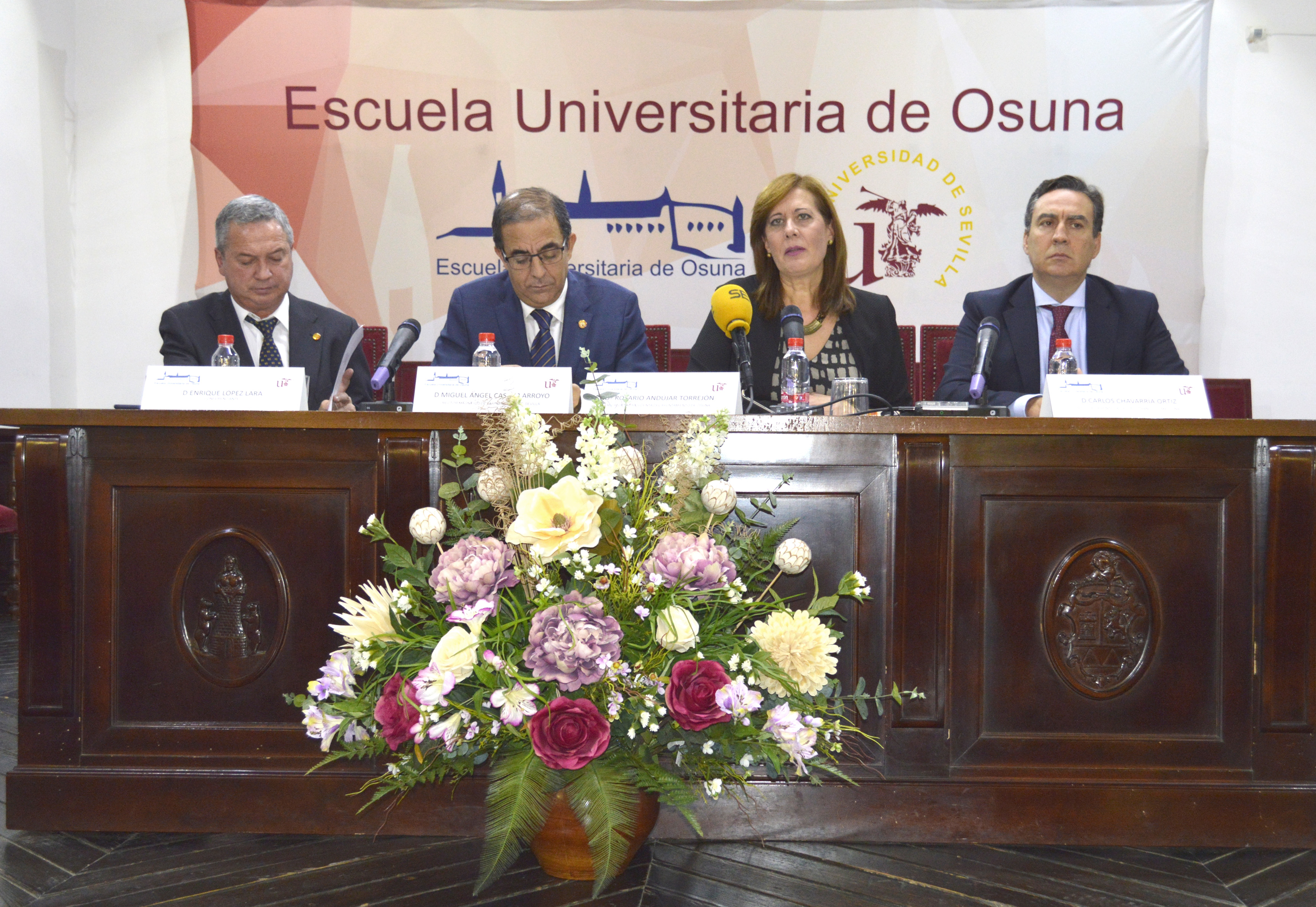 En este acto de bienvenida a toda la comunidad universitaria de Osuna, que ha tenido lugar en el paraninfo de la Escuela Universitaria, también ha estado presente el gerente de este centro, Carlos Chavarría, y donde también ha ofrecido una conferencia a todos los asistentes a este acto el doctor en Geografía y catedrático de Análisis Geográfico Regional de la Universidad de Sevilla, Enrique López Lara, con el título “Evolución y Actualidad de las fronteras en Europa.”