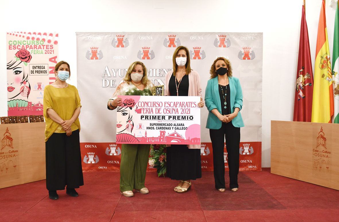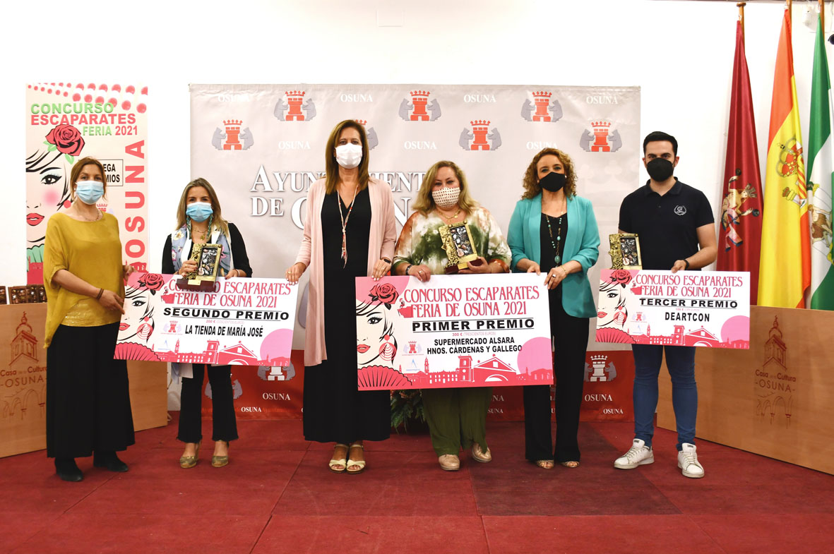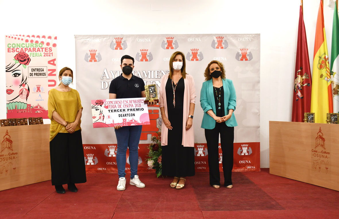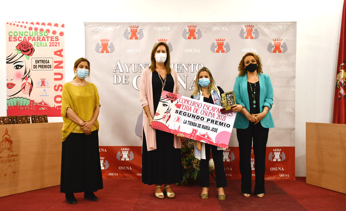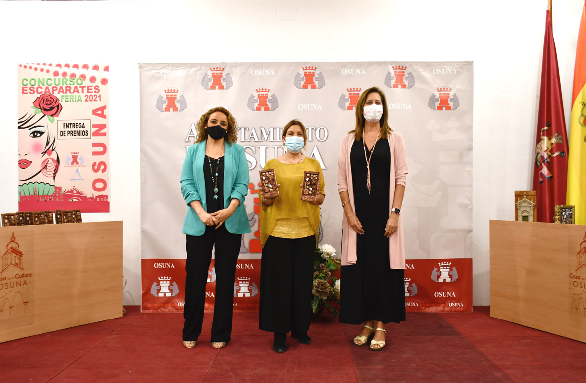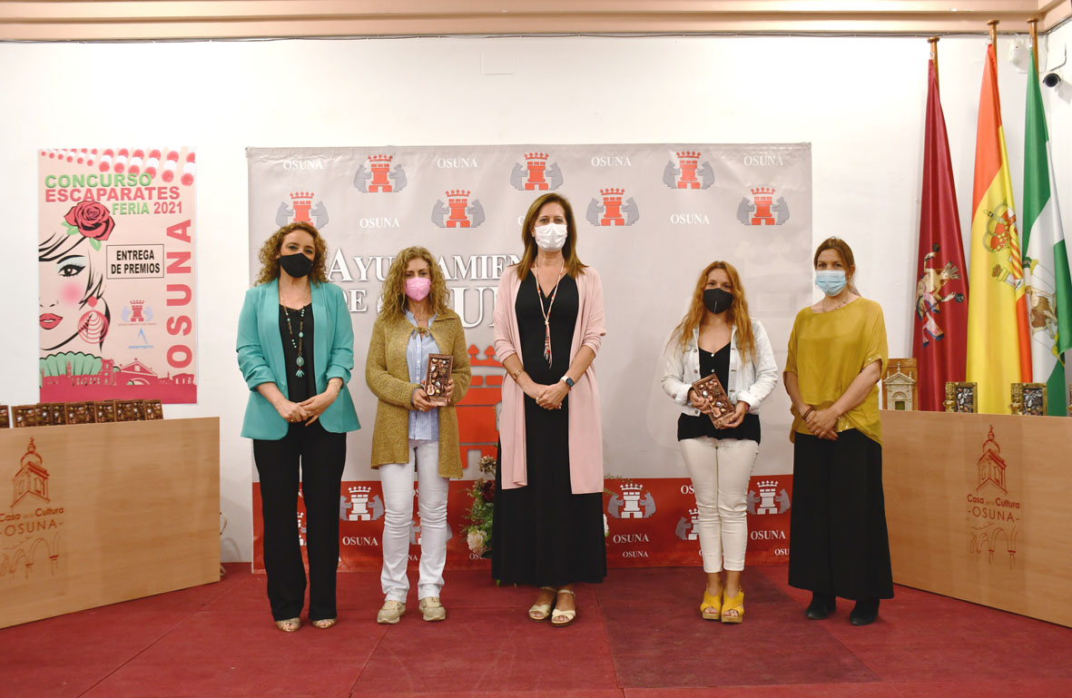 La Casa de la Cultura ha acogido el acto de entrega del I Concurso de Escaparates de Feria organizado por el Ayuntamiento de Osuna y ASEMPRO, la Asociación de Empresarios y Comerciantes de nuestra localidad. El acto ha estado presidido por la alcaldesa de Osuna, Rosario Andújar, acompañada por la delegada municipal de Comercio, Yolanda García, y la presidenta de ASEMPRO, Patricia Gutiérrez.