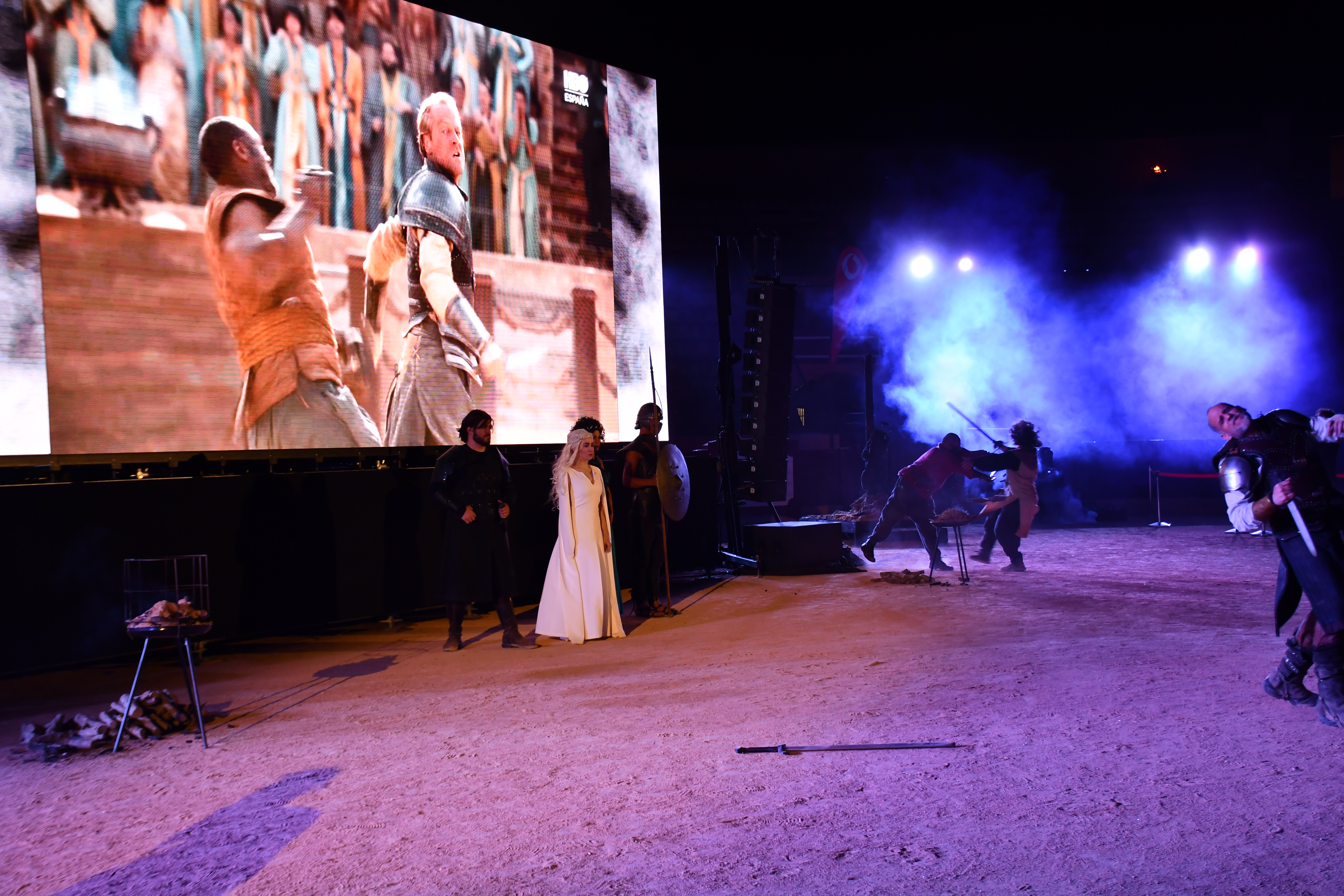 Extraordinaria jornada la que se ha vivido hoy en Osuna con la experiencia de cine inmersivo del que han disfrutado cientos de seguidores y fans procedentes de toda Andalucía en la plaza de toros de la localidad de la mano de Vodafone Yu y HBO, productora de Juego de Tronos con la proyección de dos capítulos de la serie más famosa del mundo, el primero de ellos, el que se grabó concretamente en este coso taurino, el espectacular capítulo número nueve de la quinta temporada de JDT en 2014 y el último capítulo de la pasada temporada. Un espectáculo televisivo del que ha participado también la alcaldesa de Osuna, Rosario Andújar, acompañada por miembros de su equipo de gobierno, pues el Ayuntamiento de la localidad ha prestado toda su colaboración para el desarrollo de este fantástico evento.