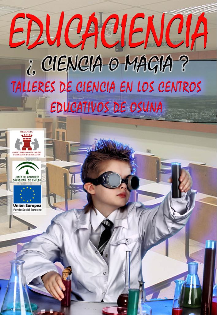 Desde la Delegación Municipal de Educación del Ayuntamiento de Osuna, se ha puesto en marcha ‘Educaciencia’, un proyecto que intenta cambiar ese concepto generalizado, que en ocasiones, la ciencia es aburrida, mostrando a través de esta iniciativa  una ciencia amena  divertida y sin edades, con la celebración de un conjunto de talleres que animan a los participantes a convertirse en verdaderos científico. Procesos de combustión, capilaridad, tensión superficial y velocidad, son algunos de los conceptos que se trabajarán en estos talleres y cuyos resultados serán flores que cambian de color, huevos indestructibles o pimienta que huye.
