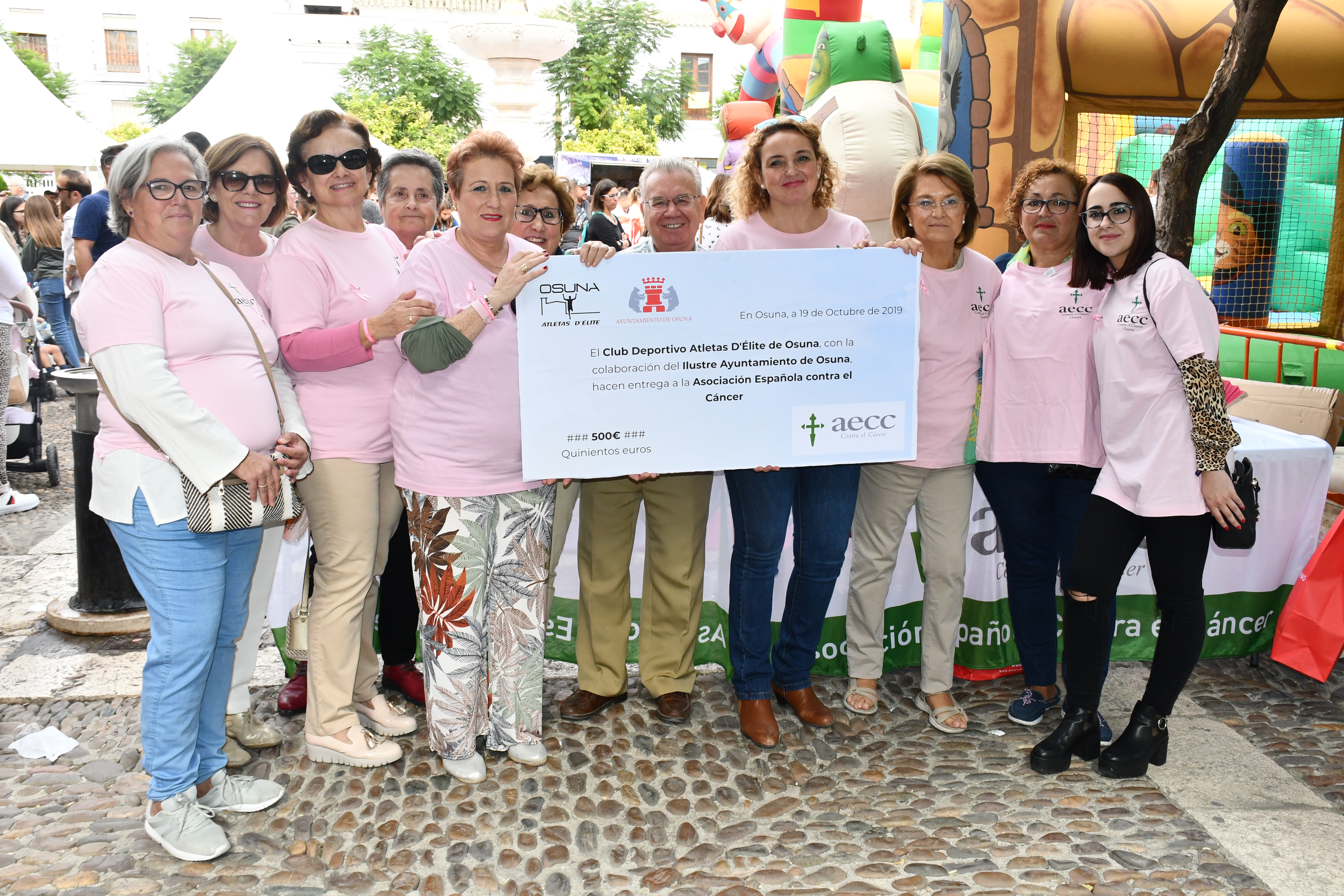 La Plaza Mayor fue el lugar elegido por la Junta Local de la Asociación Española Contra el Cáncer (AECC) para colocar una Mesa Informativa con motivo del Día Mundial Contra el Cáncer de Mama, que fue este sábado 19 de octubre, con el fin de concienciar y prevenir a los vecinos y vecinas de Osuna que por allí se acercaban, de la relevancia que tiene actualmente esta enfermedad para nuestra sociedad.
