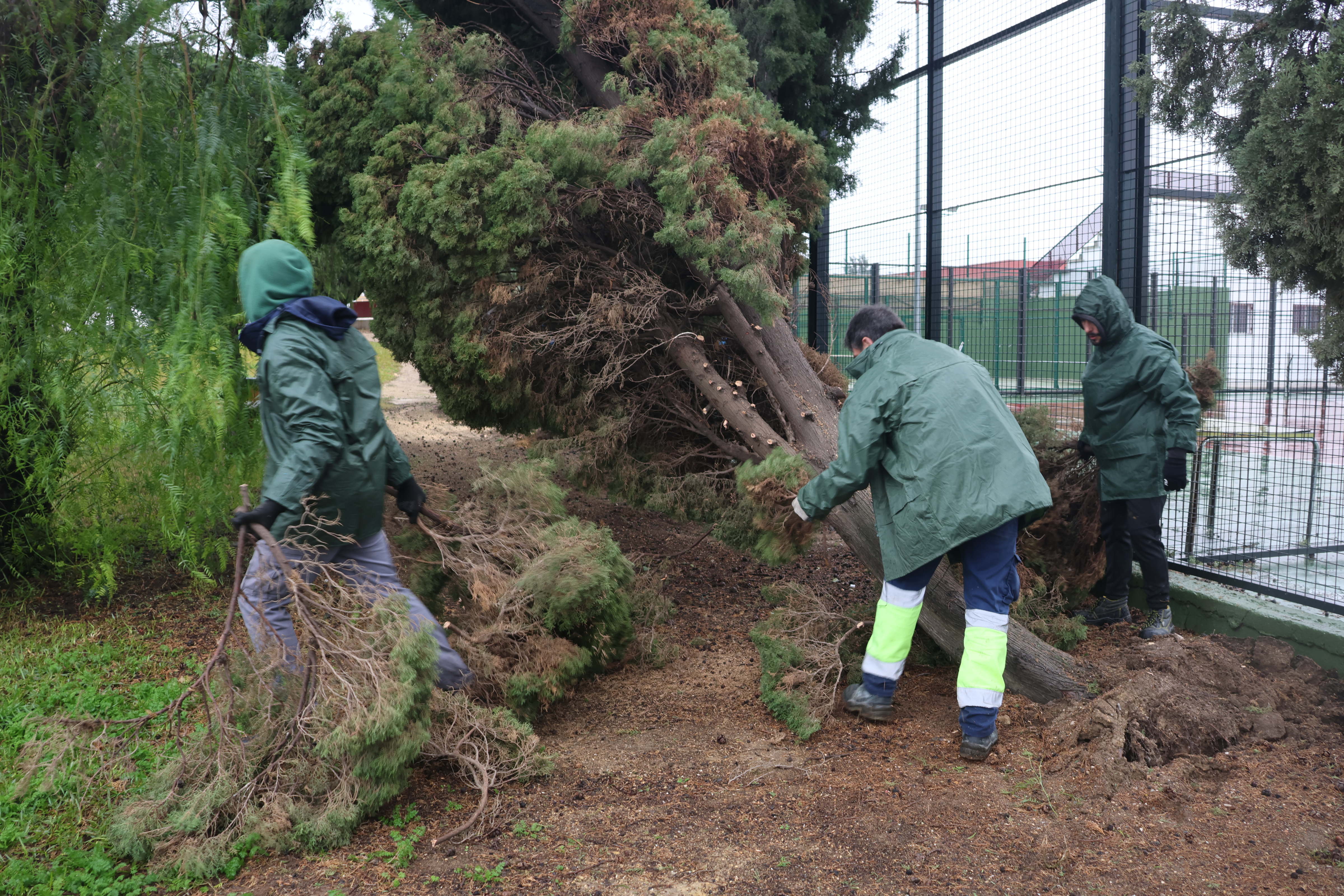 En este sentido ha recordado que “los equipos municipales continúan trabajando de forma permanente, tanto en el campo como en el núcleo urbano, a través de los Servicios Generales, la Policía Local y Protección Civil, para supervisar aquellos puntos señalizados por desprendimientos de cornisas, caída de farolas o espejos, con el objetivo de repararlos lo antes posible.”