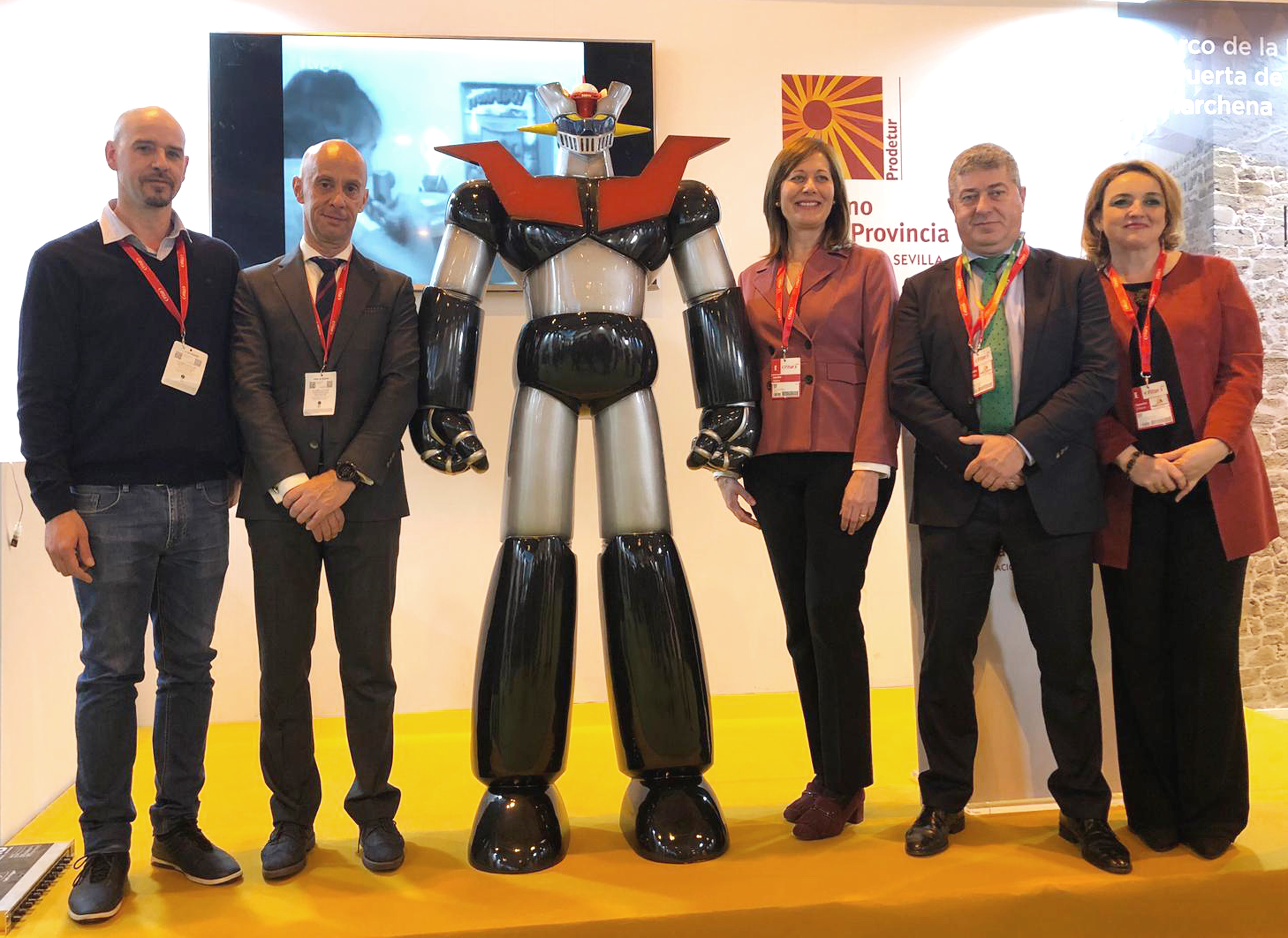 Hoy Osuna vuelve a ser protagonista en Fitur, la Feria Internacional de Turismo más importante de Europa, pues la alcaldesa, Rosario Andujar, acaba de presentar en el stand de Turismo de la Provincia de Sevilla, el Museo Andaluz del Juguete Vintage “Regreso a la infancia”, acompañada por el coleccionista local y promotor de esta idea, Jesús Cansino y de fondo, como una pieza clave del mismo, expectante ante esta presentación, Mazinger Z, ese gran robot robot gigante que, allá por los años 70, fue creado para luchar contra las fuerzas malignas y que hoy también está teniendo gran protagonismo en esta cita con el turismo nacional e internacional.