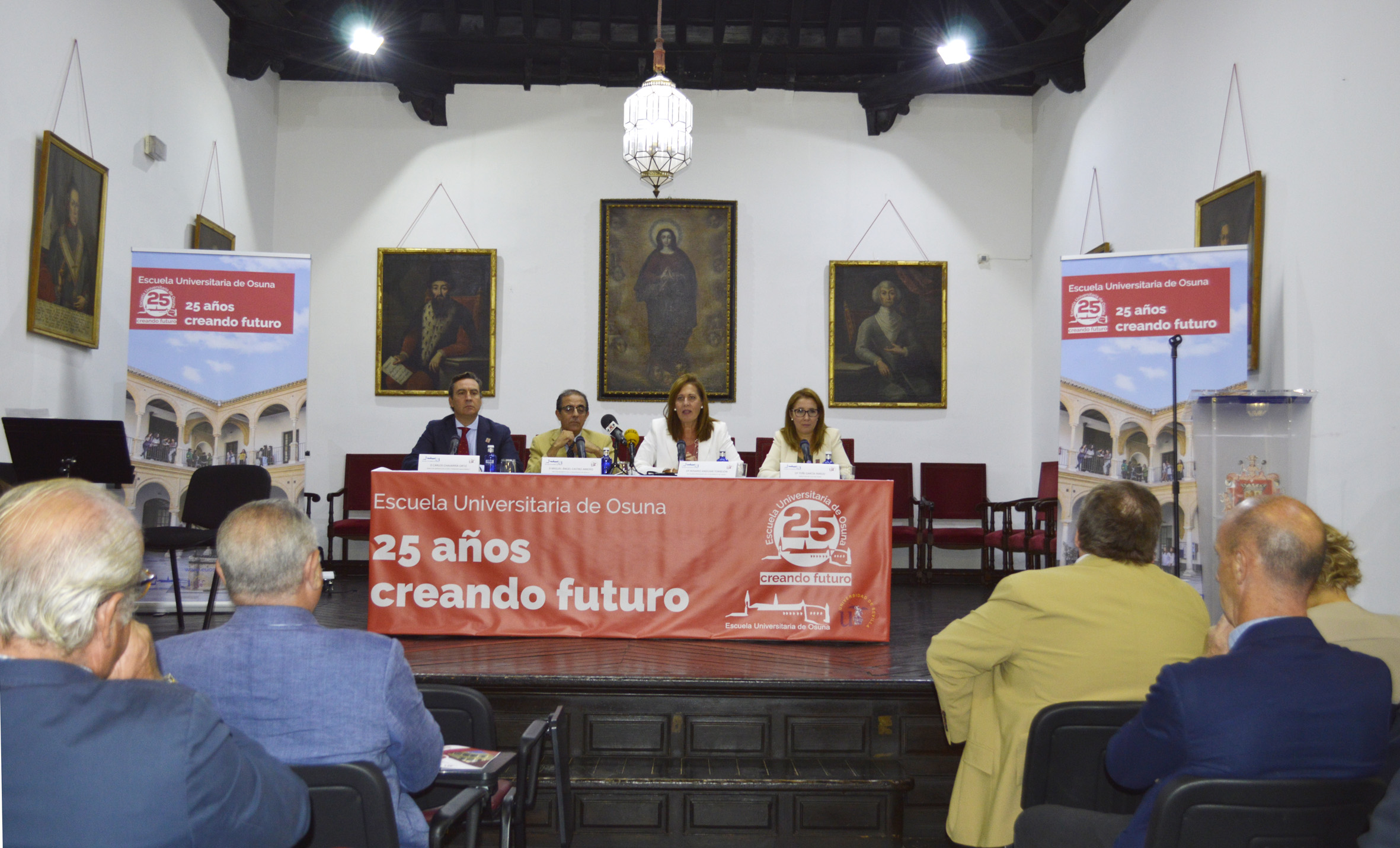 La alcaldesa de Osuna, Rosario Andújar, y el rector de la Universidad de Sevilla, Miguel Ángel Castro, han presentado en el paraninfo de la Escuela Universitaria los actos conmemorativos que, a lo largo de este curso académico, se van a ir celebrando con motivo del 25 aniversario de la creación de este centro universitario en la localidad.