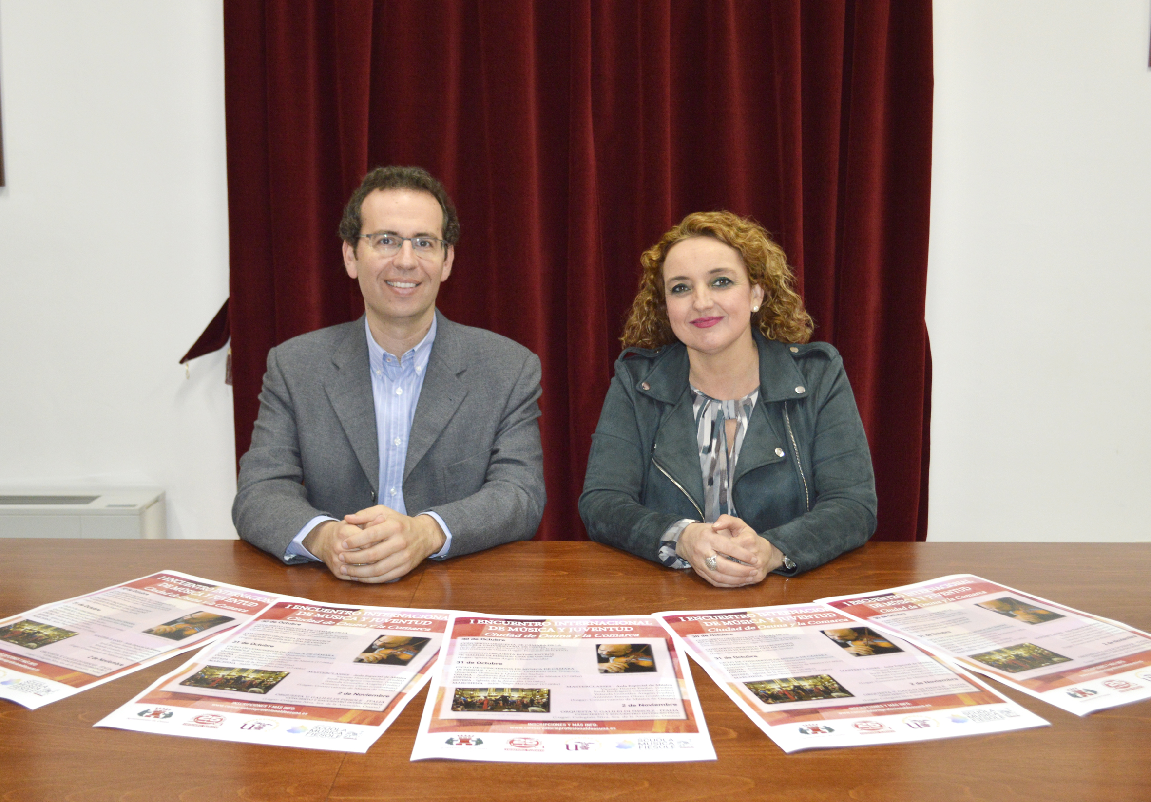 La delegada municipal de Universidad del Ayuntamiento de Osuna, Yolanda García, acompañada por el director del Conservatorio Profesional Municipal de Música de la localidad, Serafín Arriaza, han presentado el I Encuentro Internacional de Música y Juventud ‘Ciudad de Osuna y Comarca’ que se celebrará los días 30 de octubre al 2 de noviembre.