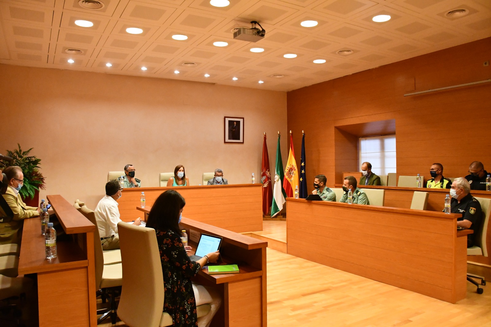 La alcaldesa de Osuna, Rosario Andújar, ha presidido una nueva Junta Local de Seguridad que se ha celebrado hoy jueves, 10 de septiembre, en el salón de plenos del consistorio municipal, acompañada por el subdelegado del Gobierno en Sevilla, Carlos Toscano, el coronel de la Guardia Civil, Luis Ortega, además del primer y segunda teniente de alcaldesa, Juan Antonio Jiménez y Brígida Pachón, respectivamente, el delegado municipal de Seguridad Ciudadana, Manuel Rodríguez, así como representantes de la Policía Local y de la Guardia Civil.