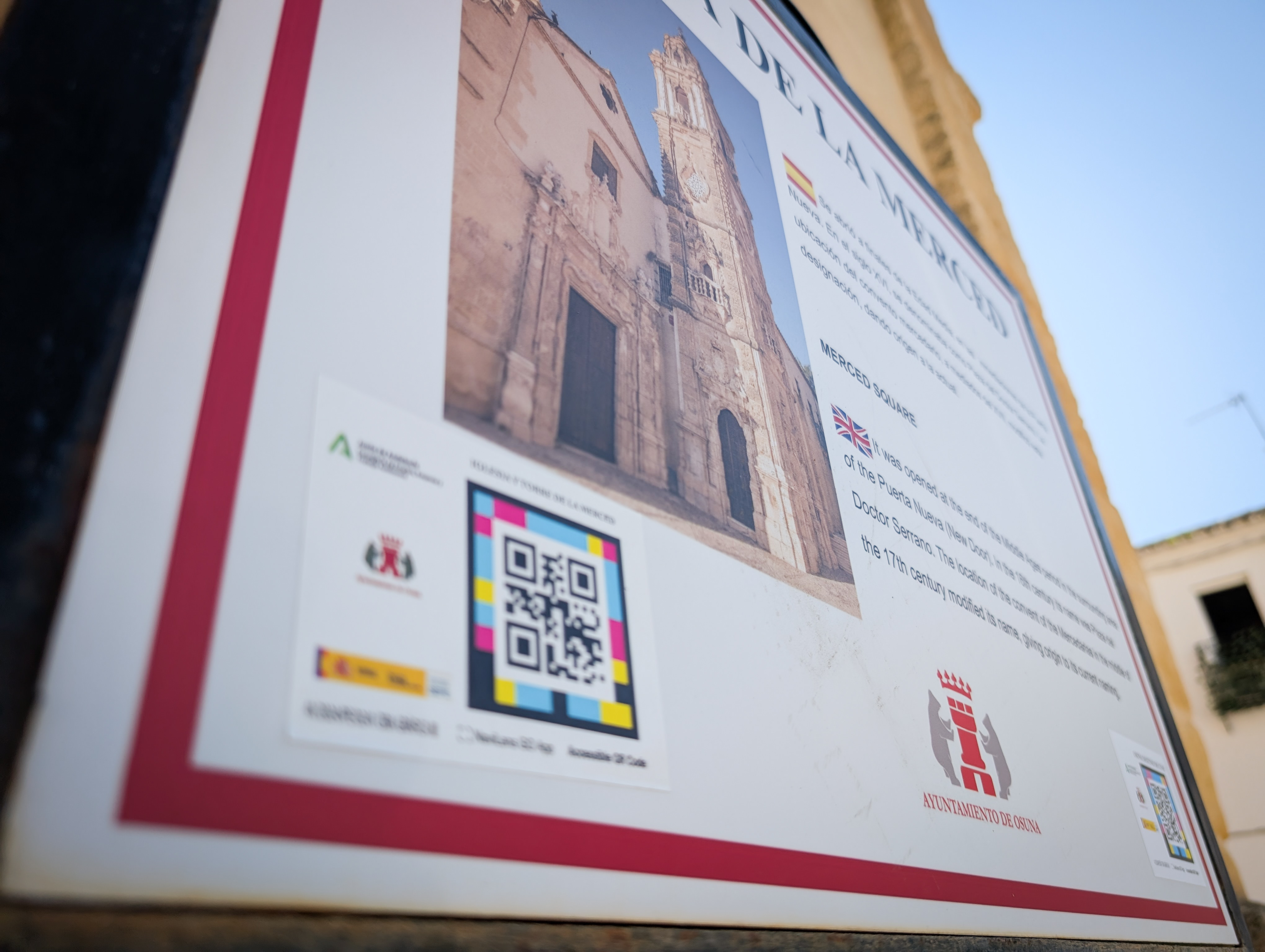 El Ayuntamiento de Osuna ha iniciado la instalación de códigos NaviLens en la señalética turística del municipio, una tecnología especialmente útil para personas con discapacidad visual, ya que la aplicación asociada a estos marcadores convierte la información en audio, permitiendo a la persona usuaria orientarse fácilmente y acceder de manera autónoma a los distintos recursos turísticos de la localidad.