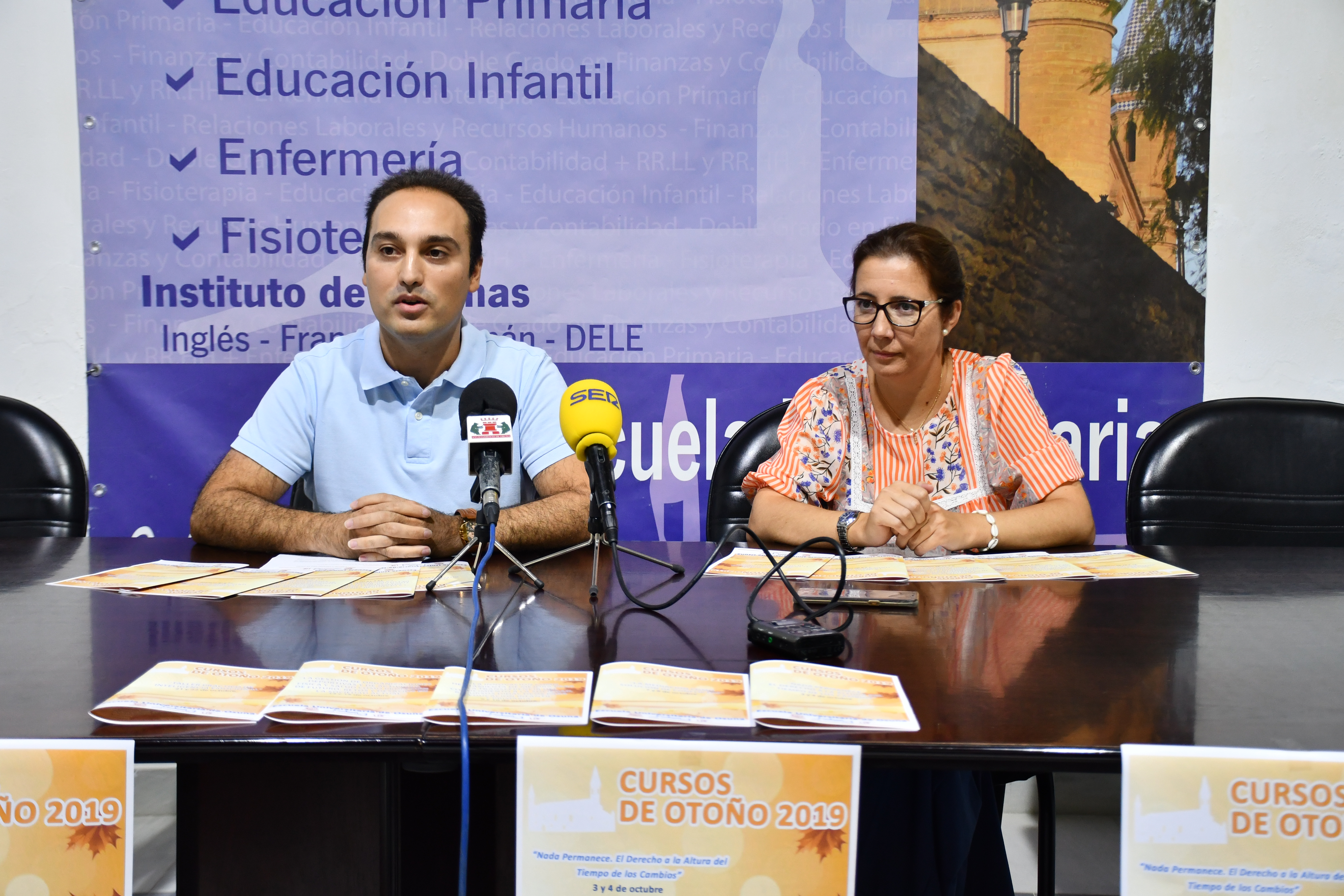 El delegado municipal de Universidad del Ayuntamiento de Osuna, Jesús Heredia ha presentado en la Escuela Universitaria la XVI Edición de los Cursos de Otoño en un acto en el que ha estado acompañado por la directora del centro, Toñi García. Una nueva edición compuesta por cinco cursos que se celebrarán desde el 3 hasta el 22 de octubre y que incluye una diversidad temática relacionada tanto con las especialidades que se cursan en la Escuela Universitaria de Osuna como con contenidos de otras especialidades, unos y otros de interés general para toda aquella persona que desee participar.
