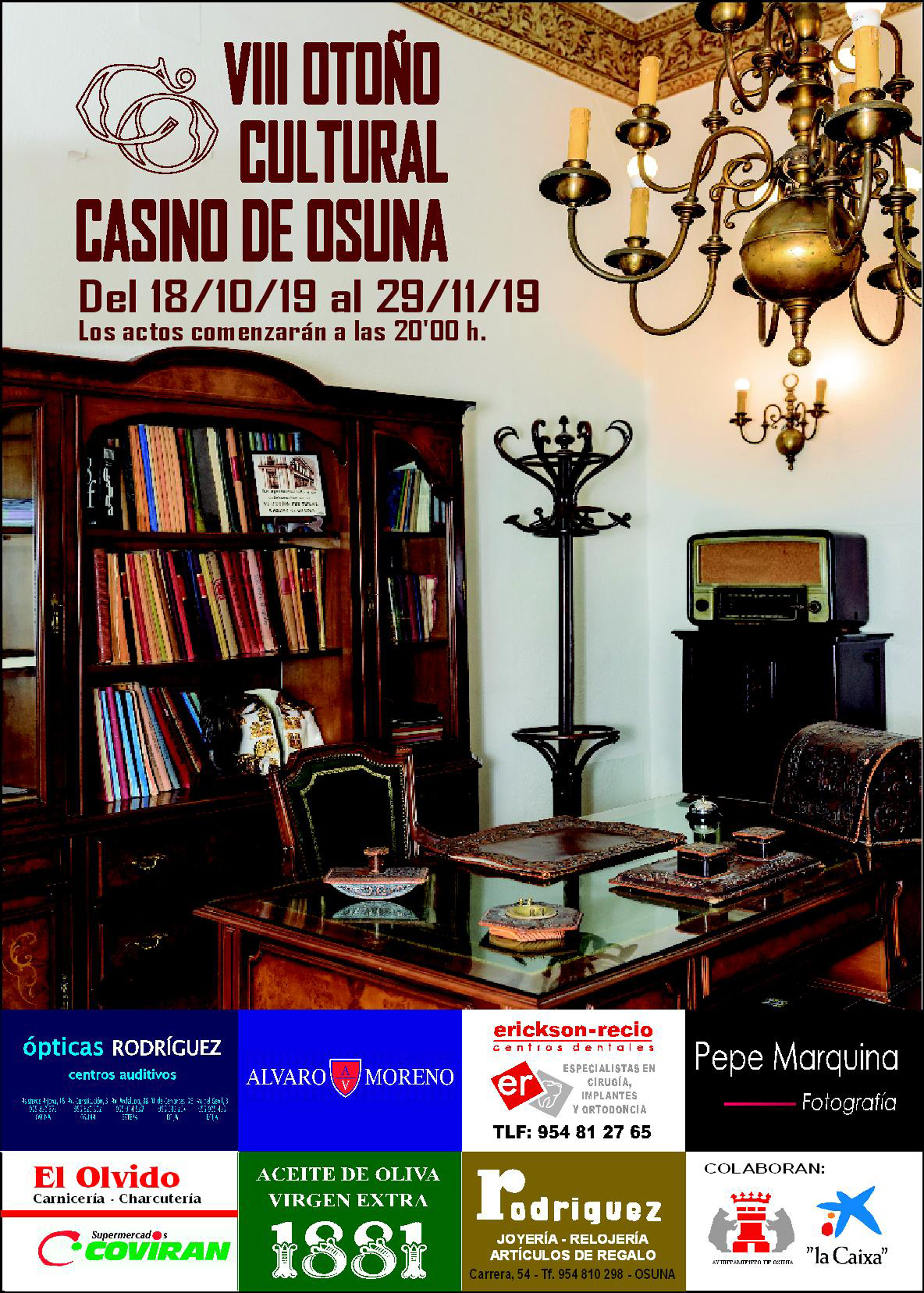 La Sociedad Casino de Osuna ha presentado la VIII Edición del Otoño Cultural, una cita ya clásica durante los viernes del mes de octubre y noviembre, donde la música, el teatro y la prensa local, tendrán especial protagonismo este año.