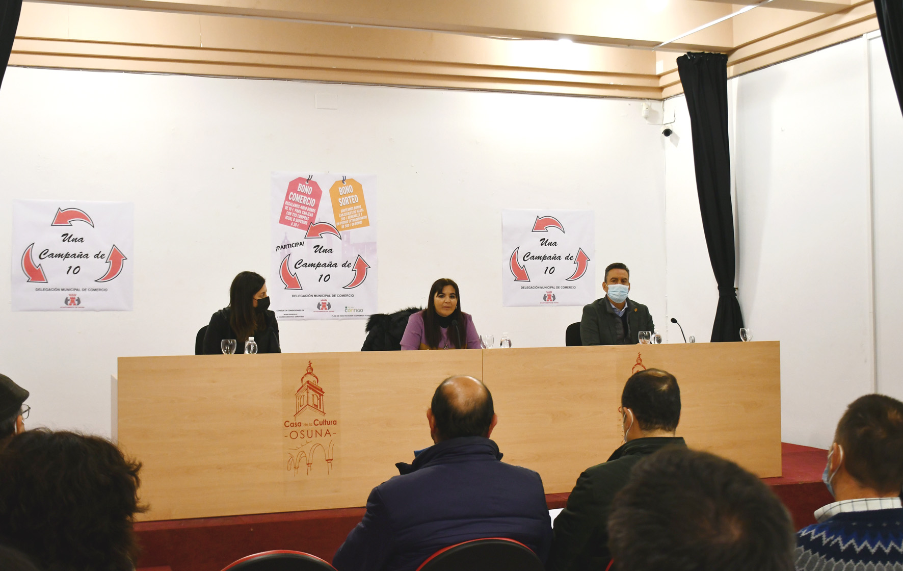 Acompañada por la delegada municipal de Hacienda, Brígida Pachón, y por el gerente del Área municipal de Desarrollo Económico, Carlos Chavarría, Ana Lebrón ha explicado “se trata de poner en marcha una campaña con una seria de líneas de actuación y que, para comenzar son dos las propuestas que se ofrecen al sector comercial de Osuna consistentes en unos bonos sorteo y en unos bonos a los comercios, para las cuales el Ayuntamiento de Osuna invertirá 50.000 euros, una cuantía procedente de los fondos del Plan Contigo de la Diputación de Sevilla y del que ha sido beneficiario el Ayuntamiento de Osuna.