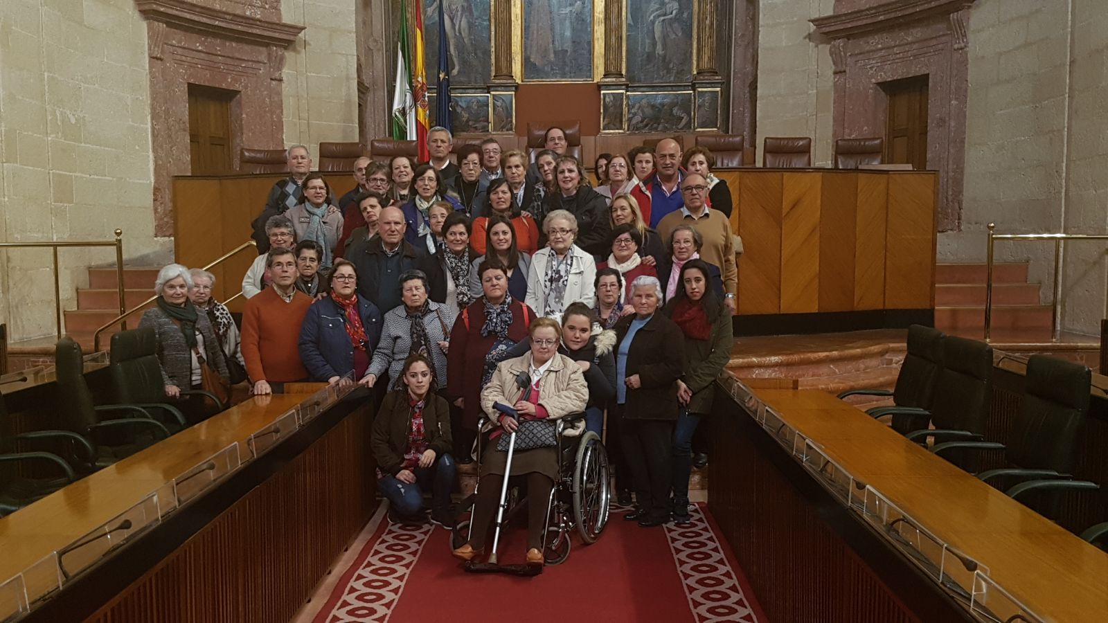 El alumnado del Centro de Educación para Adultos "Clara Campoamor" de Osuna visitó ayer el Parlamento de Andalucía, donde fueron recibidos por la parlamentaria Brígida Pachón, quien es también delegada municipal de Servicios Sociales del Ayuntamiento de Osuna. Fue ella quien les sirvió de guía para conocer el salón de plenos, espacio que acoge las reuniones de los 109 diputados elegidos por los andaluces.